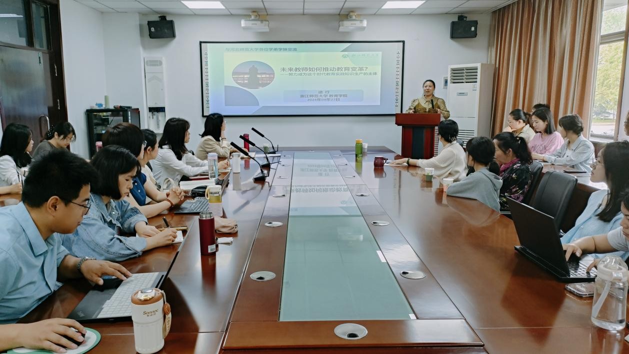 4月27日上午,浙江师范大学点点taptap官网硕士生导师逯行博士应邀到,面向广大师生开展题为“未来教师如何推动教育变革”学术讲座交流。学院教学副院长于川主持,部分专任教师、教育技术类专业研究生及相关专业本科生到场参加。