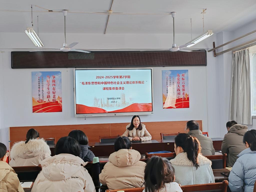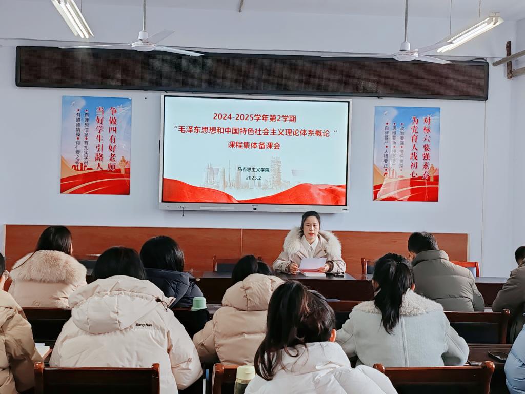 毛泽东思想和中国特色社会主义理论体系概论教学团队发挥集体智慧,共同学习了中共中央、国务院印发的《教育强国建设规划纲要(2024-2035年)》,进一步提高政治站位,强化责任担当。接着,主备人在备课会上对“毛泽东思想和中国特色社会主义理论体系概论”课新学期各项教学资料的准备、教研活动计划、线上课程的建设和使用、实践教学的开展、课程考核等相关内容进行了全面讲解,强调要着力讲明白、讲清楚、讲透彻马克思主义中国化的理论成果和科学内涵,让青年学子在“党味”浸染中明理增信、崇德力行。随后,教学团队围绕如何上好开学思政第一课、各专题教学重、难点问题进行了经验分享。大家纷纷表示,要以《教育强国建设规划纲要(2024-2035年)》为指引,坚持思政课建设和党的创新理论武装同步推进,以饱满的热情、十足的干劲投入新学期的各项教学工作中,持续推动思政课高质量发展。党总支副书记李亚慈对教学团队提出三点要求:一是要知责于心,牢记“立德树人”初心,以高度的使命感讲好讲实思政课;二是要担责于身,强化理论学习,以扎实的理论功底讲准讲透思政课;三是要履责于行,学会方法创新,以较高的教学技能讲深讲活思政课。