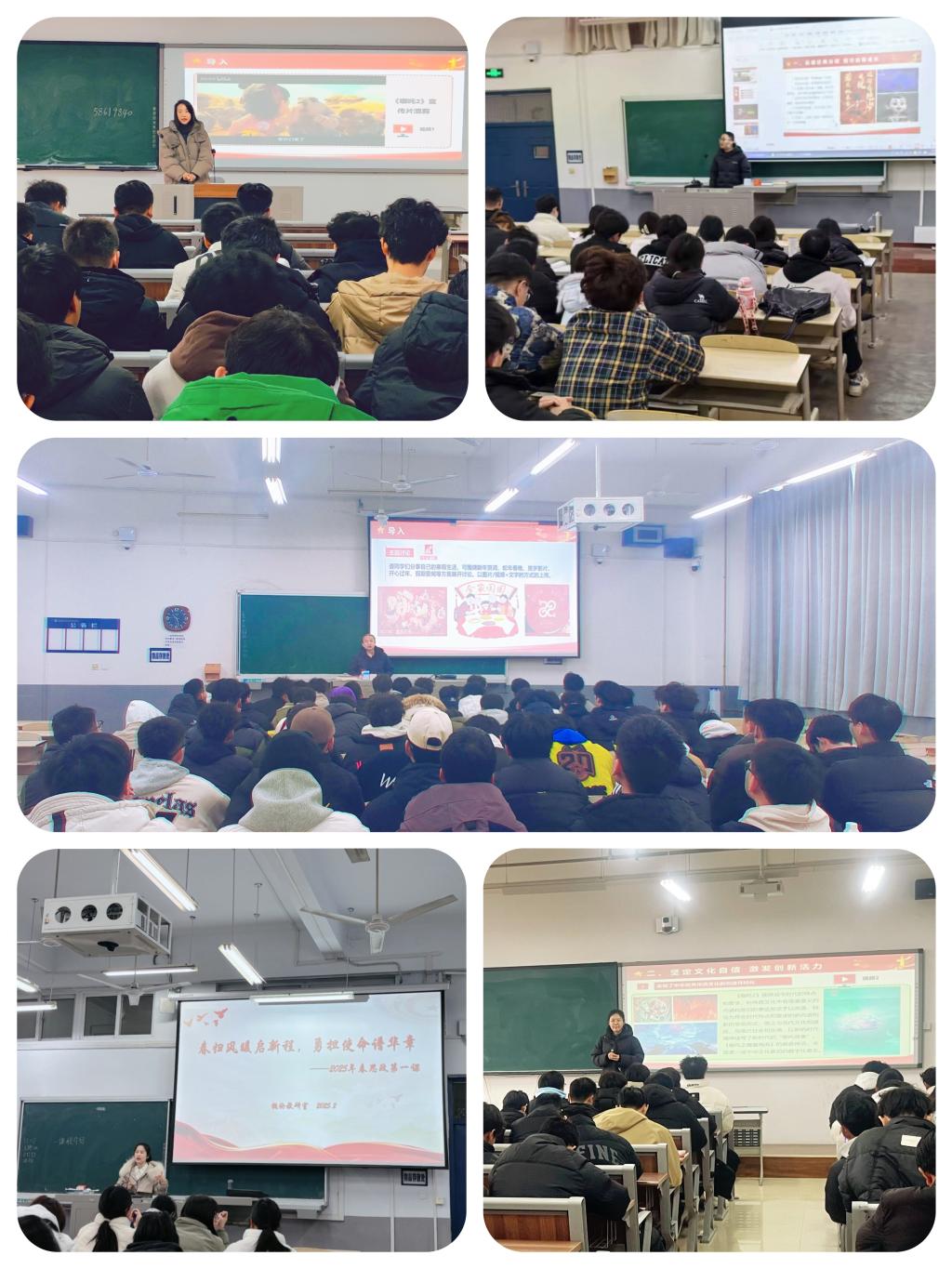 毛泽东思想和中国特色社会主义理论体系概论教学团队“春归风暖启新程 勇担使命谱华章”为主题,从“品读经典台词 指引自我成长”“坚定文化自信 激发创新活力”“敢于死磕到底 匠心铸就梦想”“感悟时代发展 凝聚奋进力量”四个方面展开讲述。教学过程中,主题讨论、抢答、影片经典片段配音秀等活动贯穿其中,DeepSeek的研发使用、黄旭华院士的事迹、饺子导演的人生经历等案例有效融入,给同学们带来了一堂“走新更走心”“有趣又有效”的思政第一课。