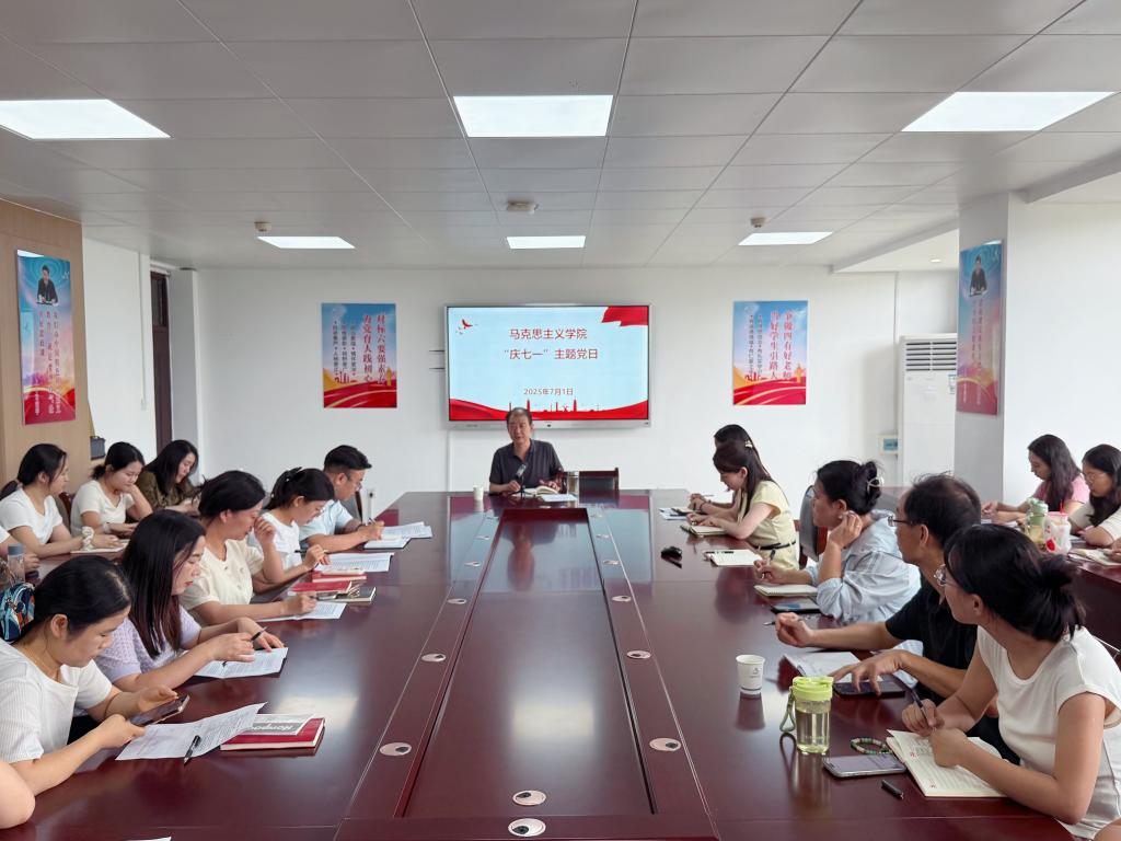 为推动深入贯彻中央八项规定精神学习教育落地见效,聚焦主责主业发挥先锋模范作用,凝聚推动工作的强大合力,在中国共产党成立104周年之际,7月1日,beat365正版唯一官网必一教师第一党支部和教师第二党支部联合开展庆“七一”主题党日活动,活动由beat365正版唯一官网必一党总支书记、院长孟昭阳主持,全体党员参加活动。