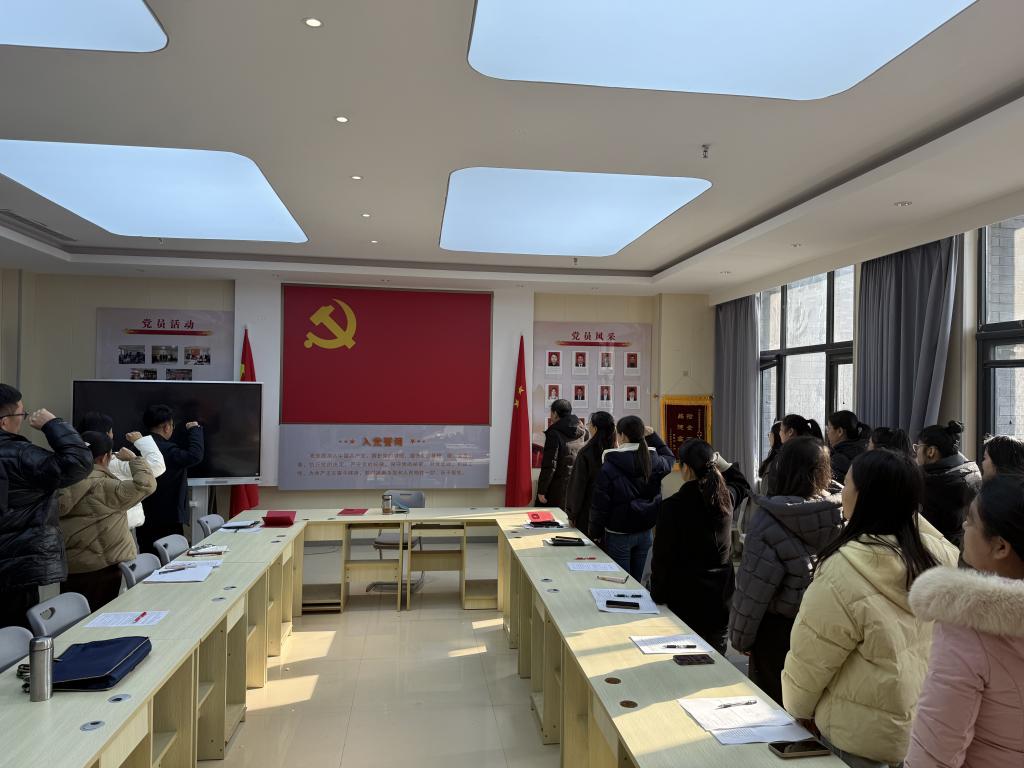 活动现场,党总支书记、院长孟昭阳为下半年入党的同志颁发了印有初心寄语的“政治生日”贺卡。一张张承载着组织关怀与殷切期望的贺卡,既是对党员入党初心的铭记,更是对大家踔厉奋发、笃行不怠的鞭策与鼓舞。全体党员重温入党誓词,铮铮誓言彰显初心使命,勉励全体党员永葆党员本色,勇担育人使命。
