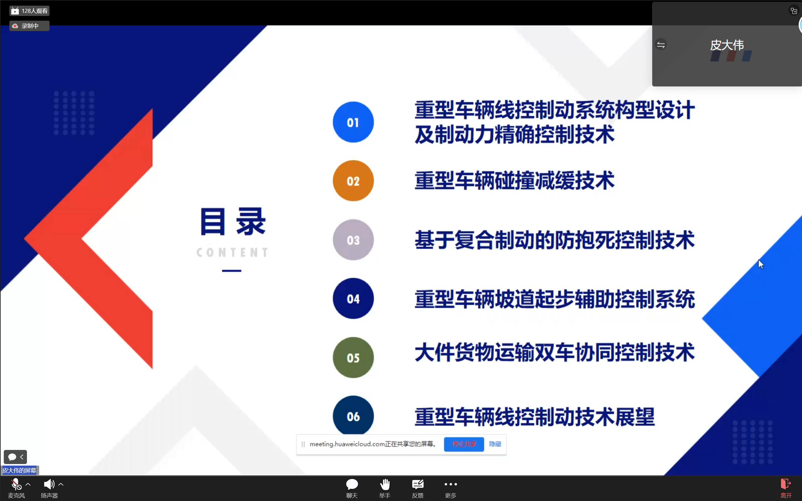 2024年8月26日下午14:00,在现代交通工程中心8B222,南京理工大学机械工程学院博士生导师皮大伟教授为暑期学校做题为《重型商用车辆纵向动力学及控制技术》的线上线下专题讲座。线上通过华为云会议视频平台直播,本次讲座由万象城awcsport官网副院长刘新田教授主持。